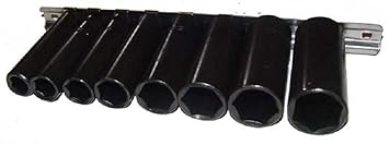 Nine DEEP impact socket set with a 3/8" drive. Fully polished drop forged. Comes with socket holder. Sizes: 3/8", 7/16", 1/2", 9/16", 5/8", 11/16", 3/4", 13/16"