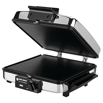 grilling a sandwich or steak. To create griddle space, the top opens up