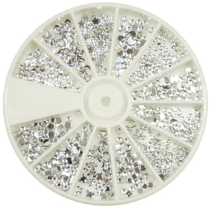 EVERMARKET Nail Art MoYou Silver Moon Rhinestone Pack of 1200 Crystal Premium Quality Gemstones in 12 different shapes and sizes, beauty accessory for women nails, fun and easy to apply with top coat or nail glue