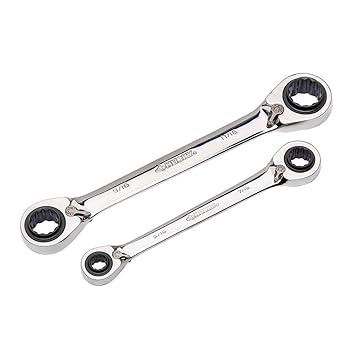 The Husky 2-Piece 4-in-1 Reversible Ratcheting Wrench features a